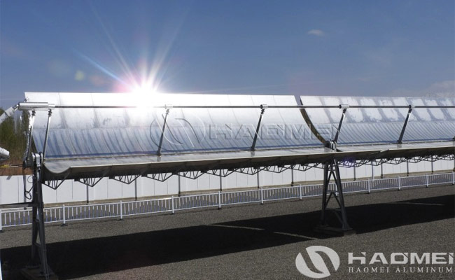 La lámina de aluminio espejo para concentrador solar parabólicos, producida por Haomei Aluminum, tiene un grosor de 1250 mm y un espesor de entre 0,2 mm y 1,5 mm. Se presenta en rollos para facilitar su transporte y su superficie espejada está recubierta con una película de plástico para protegerla de daños. La empresa ofrece superficies de lámina de aluminio espejo con una reflectividad del 95 % y una reflectancia solar total del 98 %. Gracias a su capa resistente a la intemperie, todas las láminas de aluminio para espejos solares son ideales para su uso en exteriores en espejos CPC (Concentración Parabólica Compuesta), colectores de tubos de vacío o concentradores cilindroparabólicos (CSP). También se pueden utilizar como material para reflectores de concentración en aplicaciones fotovoltaicas (CPV).